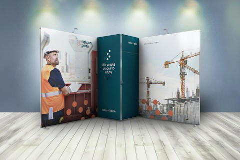 easyWall Textilwand – faltbare Messestand-Rückwand mit Textilbespannung für flexiblen, mobilen oder wiederkehrenden Einsatz auf Events oder Messen.