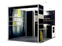 Die moderne Optik des MultiFabric Messestandes überzeugt genauso wie der extrem einfache, komplett werkzeugfreie Auf-und Abbau. Dieser Messestand ermöglicht auch Kombinationen aus LED- und klassischen Elementen.