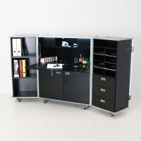 Nun ist Homeoffice an jedem Ort möglich. Das mobile Büro lässt sich bequem zusammen mit Ihren Unterlagen in jeden Raum schieben.
