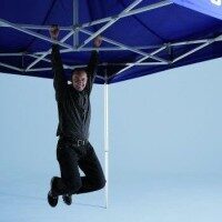 Mastertent®-Zelte sind ein Inbegriff von Solidität. Der geniale Klappmechanismus der Zeltstruktur wird aus Aluminiumprofilen gefertigt, deren Legierung eigens für Mastertent® hergestellt wurde. Langjährig erprobte Verbindungselemente, Eckmodule und das 8-eckige Profil der Standbeine sorgen dafür, dass ein echtes Mastertent®-Zelt bei Wind und Wetter zuverlässig und störungsfrei seinen Einsatz leistet. Der TÜV hat sie übrigens zertifiziert!