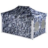 Auf Anfrage werden die bedruckten Zelt-Seitenwände für beidseitige Verwendung angefertigt. Somit kann, je nach Zweck und Verwendung, die bedruckte Seite für innen oder außen verwendet werden. Zelt-Seitenwände können auch beidseitig bedruckt werden.