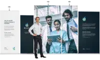 Ein hochwertiges und robustes Roll-Up für den häufigen Einsatz. Es besticht durch stabiles Aluminiumgehäuse, schnellen werkzeuglosen Aufbau und einfachem Grafikwechsel.