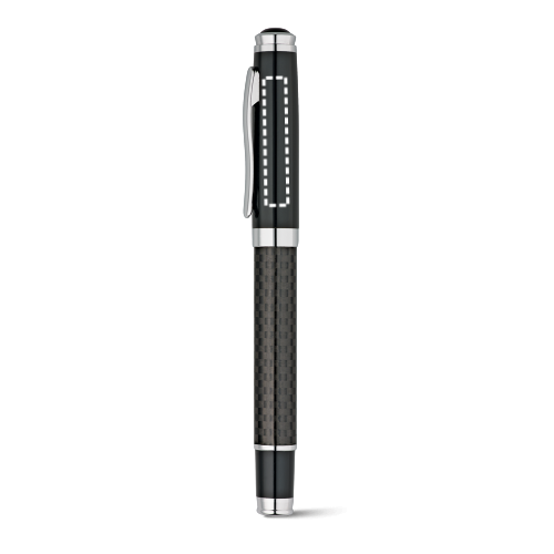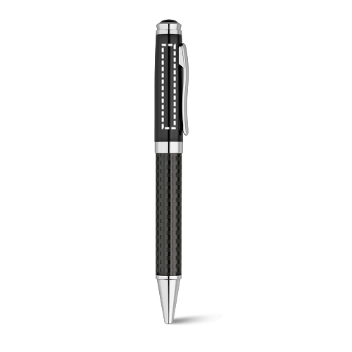 Set bestehend aus Rollerball und Kugelschreiber aus Metall und Carbonfaser, beide mit Clip. Das Set hat eine schwarzer Mine und der Kugelschreiber hat einen Drehmechanismus. Geliefert in einem gepolsterten Etui aus PU. Kugelschreiber: ø13 x 142 mm | Roller: ø13 x 140 mm | Etui: 171 x 67 x 38 mm