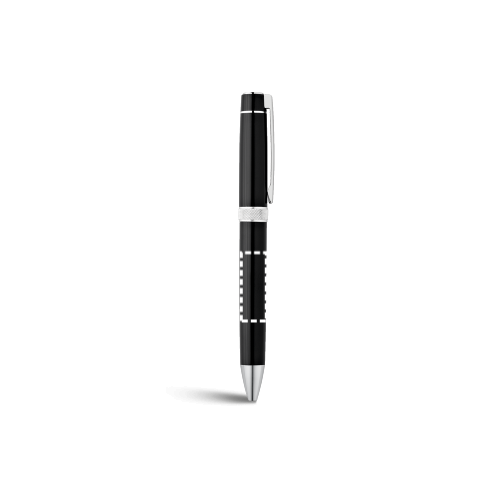 Set bestehend aus Rollerball und Kugelschreiber aus Metall mit Drehmechanismus und Clip. Schwarzschreibende Mine. Geliefert in einem gepolsterten Geschenketui. Kugelschreiber: ø13 x 132 mm | Roller: ø13 x 135 mm | Etui: 171 x 71 x 31 mm