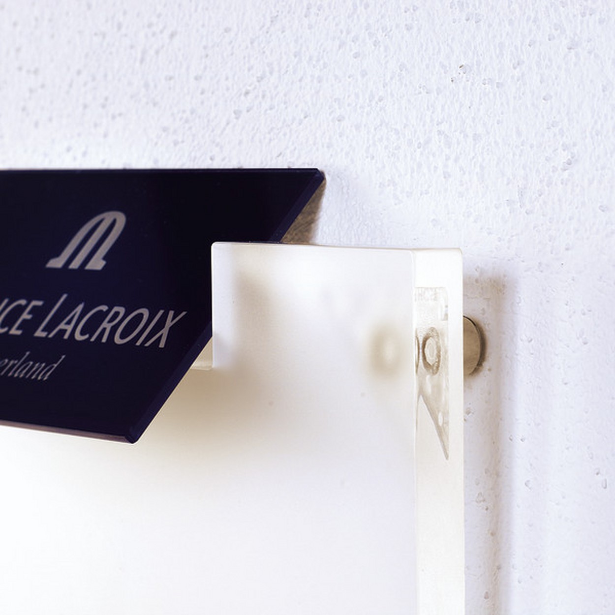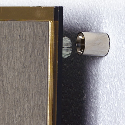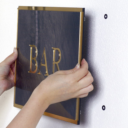 Befestigung: Klicksystem, unsichtbar, für Schilder ohne Lochbohrung, schnell gewechselt, einfache Montage. Material: Polycarbonat, Messing vernickelt. Wandabstand: 20mm. Plattenstärke: keine Begrenzung.