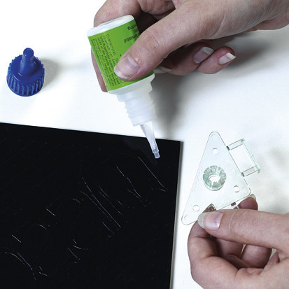 "Unsichtbare" Befestigung mit Montagehilfe. immer wenn sichtbare Halter unerwünscht sind und sie auf Löcher verzichten müssen oder wollen. Polycarbonathalter mit den Randabstandsbügeln positionieren, auf der Schilderrückseite befestigen, Bohrlöcher mit den Doppelklebern an der Wand ganz einfach markieren, Wandhülsen andübeln und das Schild einklicken.