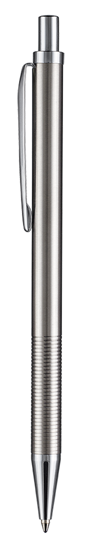 Dieser schlanke Metallkugelschreiber aus Edelstahl kann sich überall sehen lassen. Ausgestattet ist dieser Druckkugelschreiber mit einer Metallgroßraummine BUDGET.
